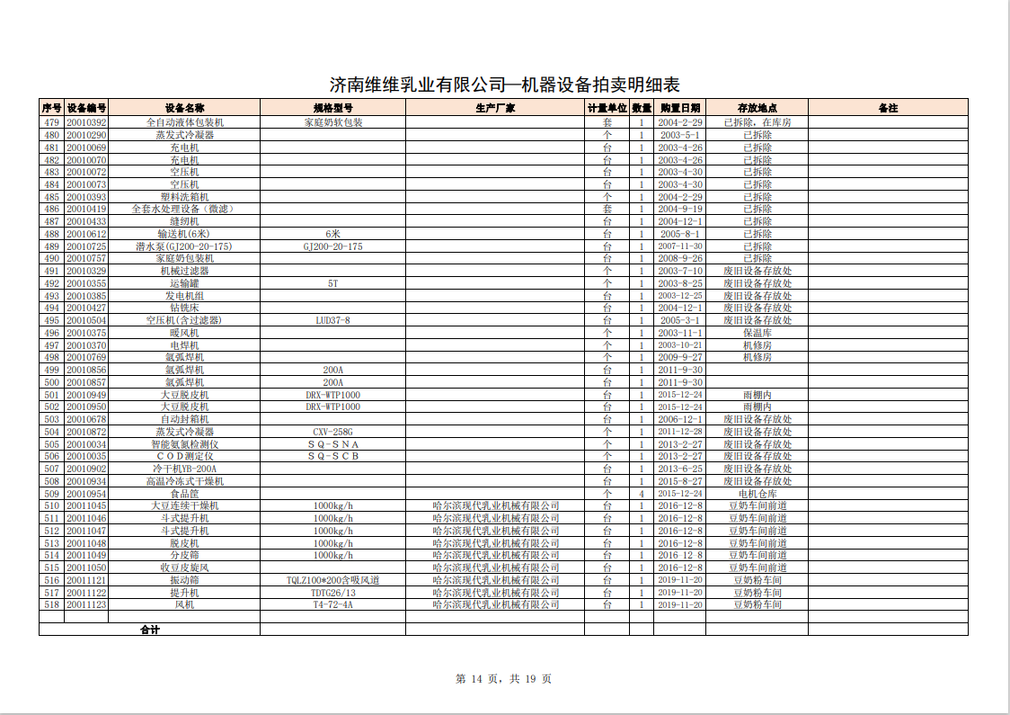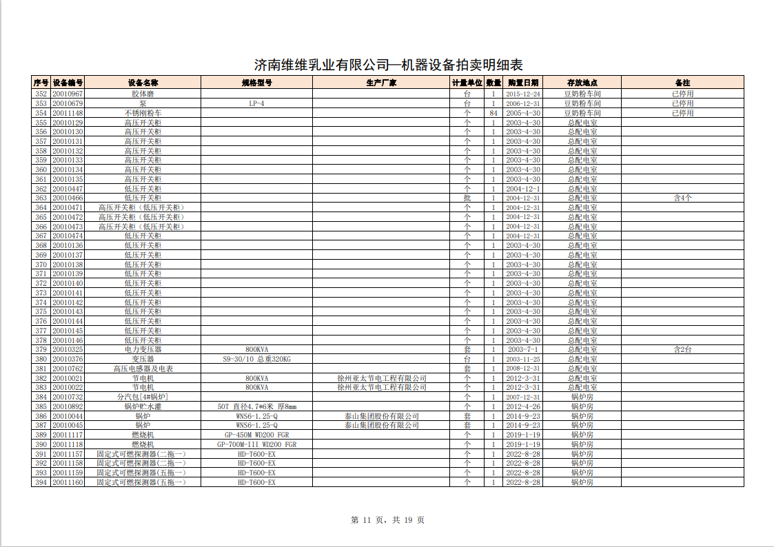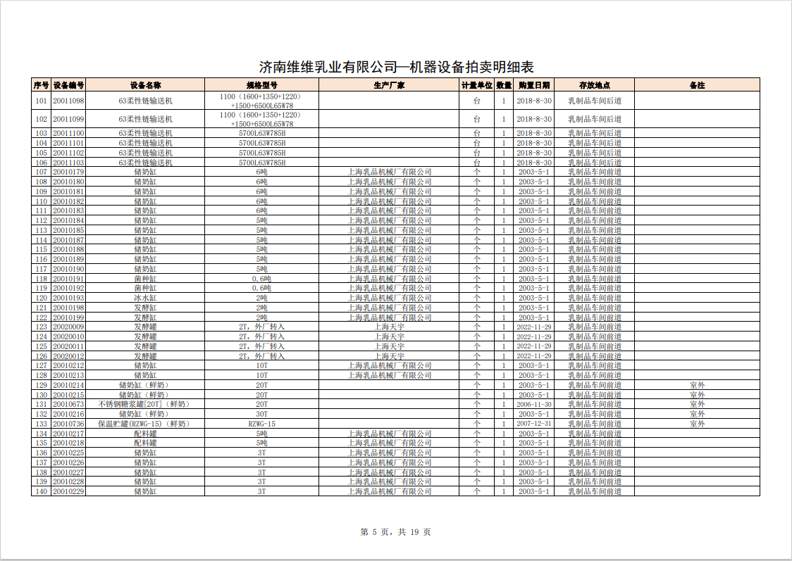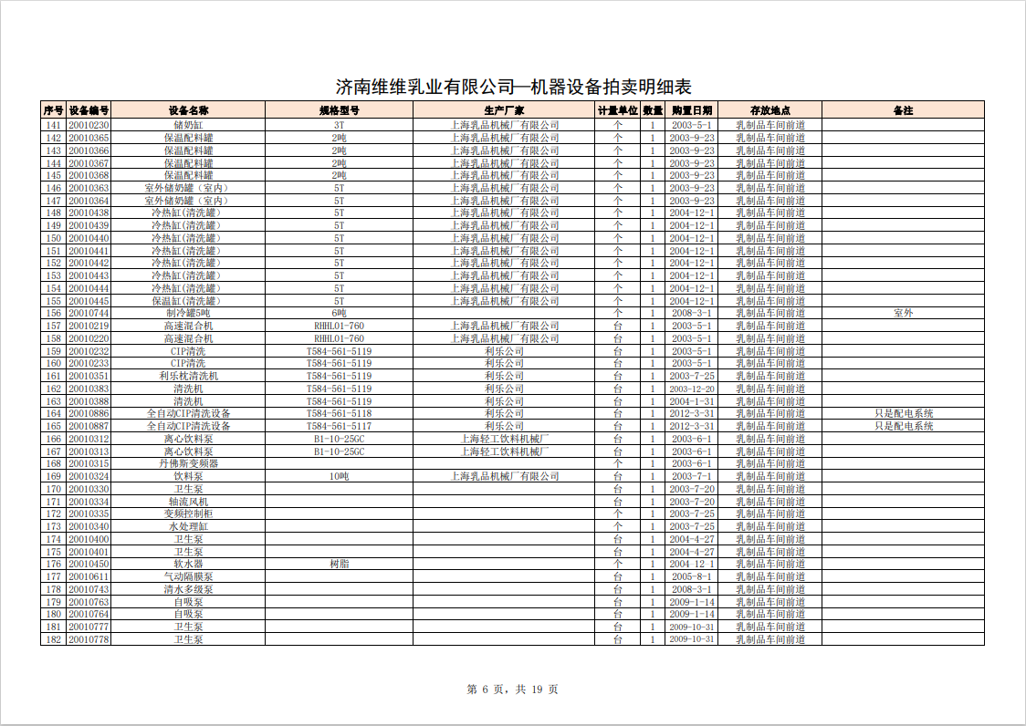 主要包含:牛奶生產設備、豆奶生產設備、利樂無菌灌裝設備、各型不銹鋼儲罐和發(fā)酵罐、鍋爐、烘干設備、空調、變壓器、配電設備、倉儲設備等。