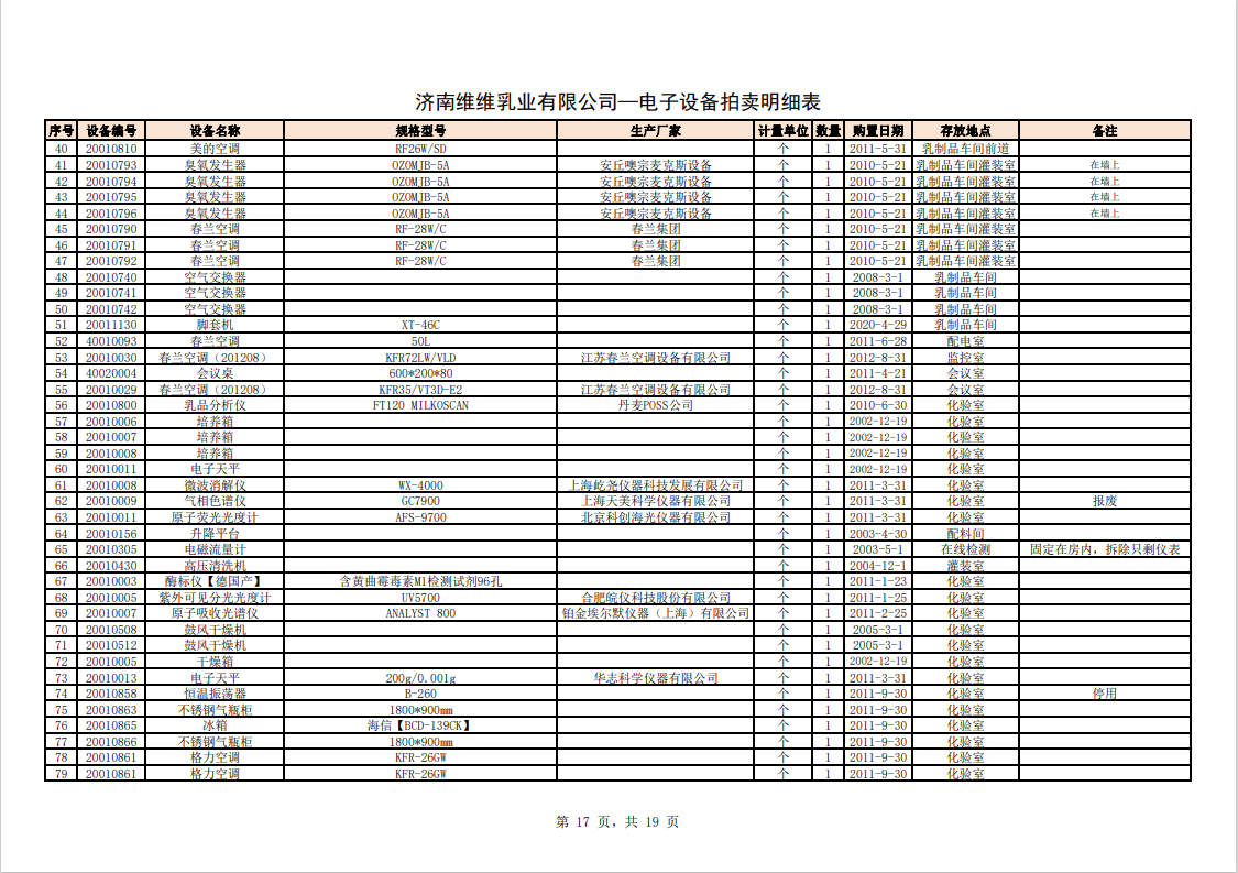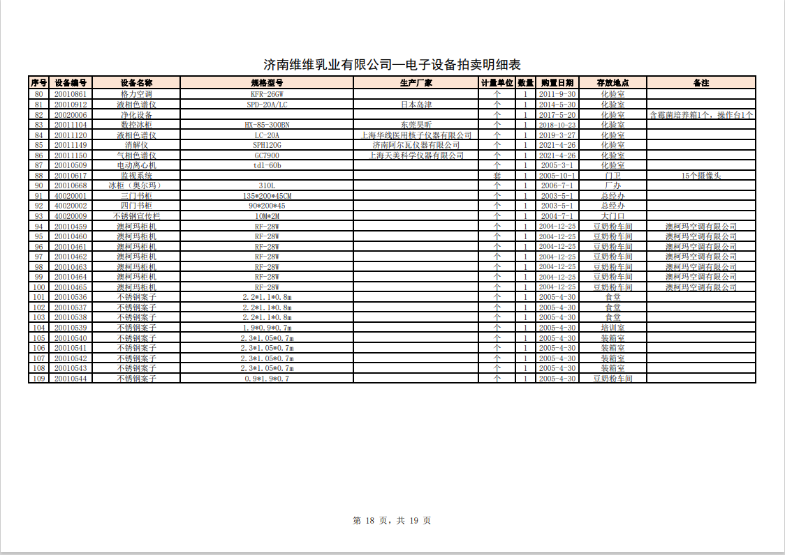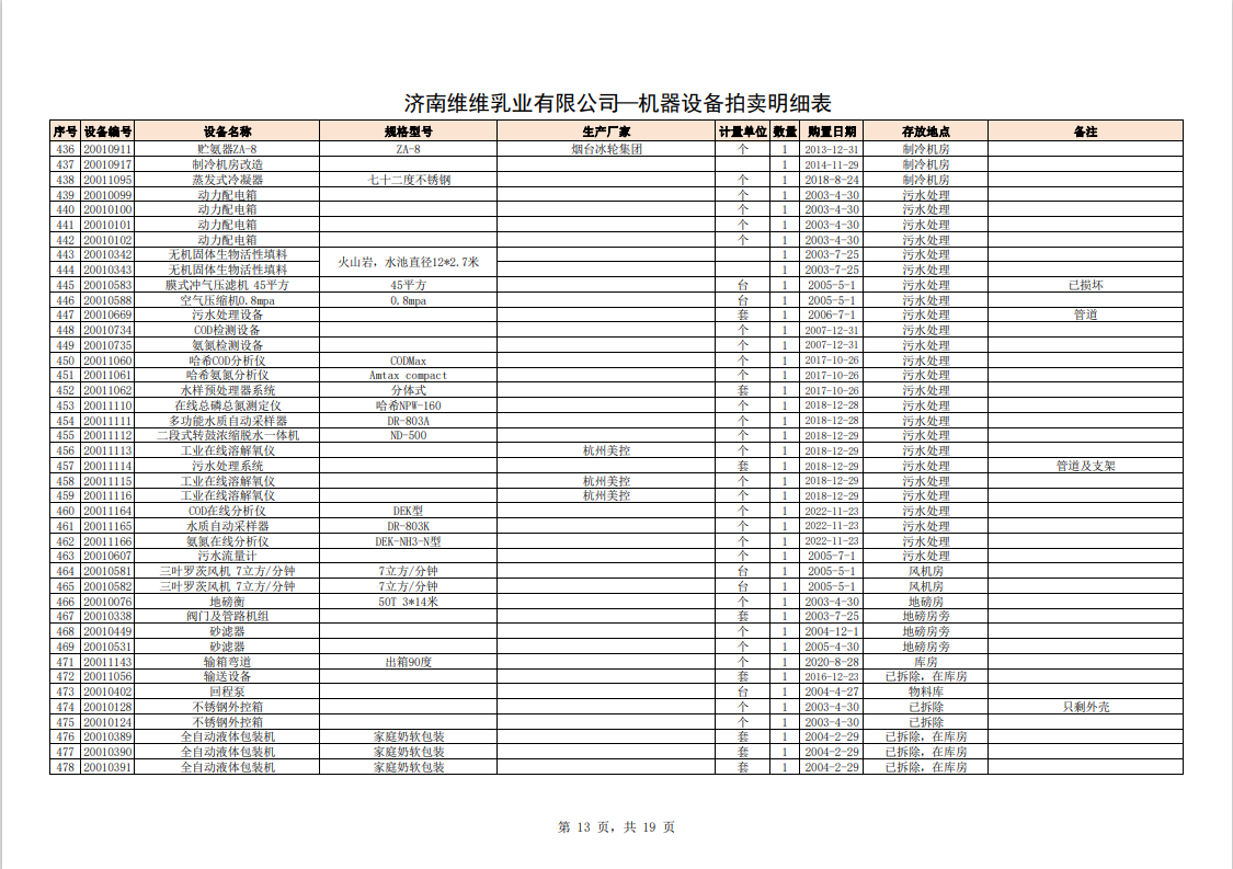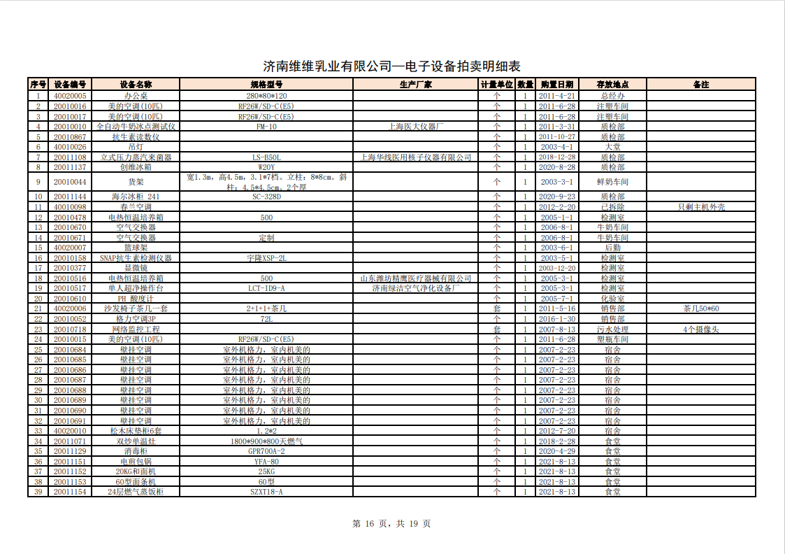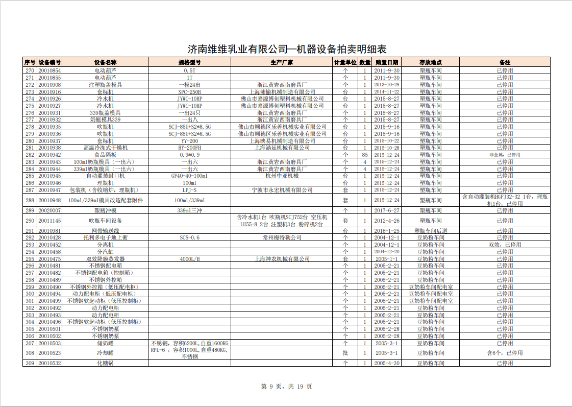 關注微信公眾號我公司受委托,定于2023年10月28日10時(網絡延時除外)在中拍平臺通過網絡競價方式公開拍賣:濟南維維乳業(yè)有限公司食品飲料生產加工設備及固定資產一批。