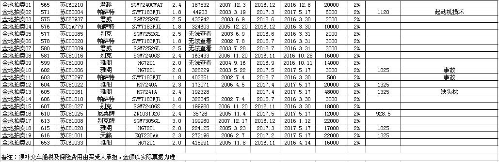 特別說(shuō)明:本場(chǎng)拍賣會(huì)限報(bào)500個(gè)競(jìng)買號(hào)牌,達(dá)到限定號(hào)牌數(shù)即停止辦理報(bào)名手續(xù)。每個(gè)競(jìng)買人限報(bào)5個(gè)競(jìng)買號(hào)牌,每個(gè)競(jìng)買號(hào)牌只能競(jìng)拍成交一輛車。
