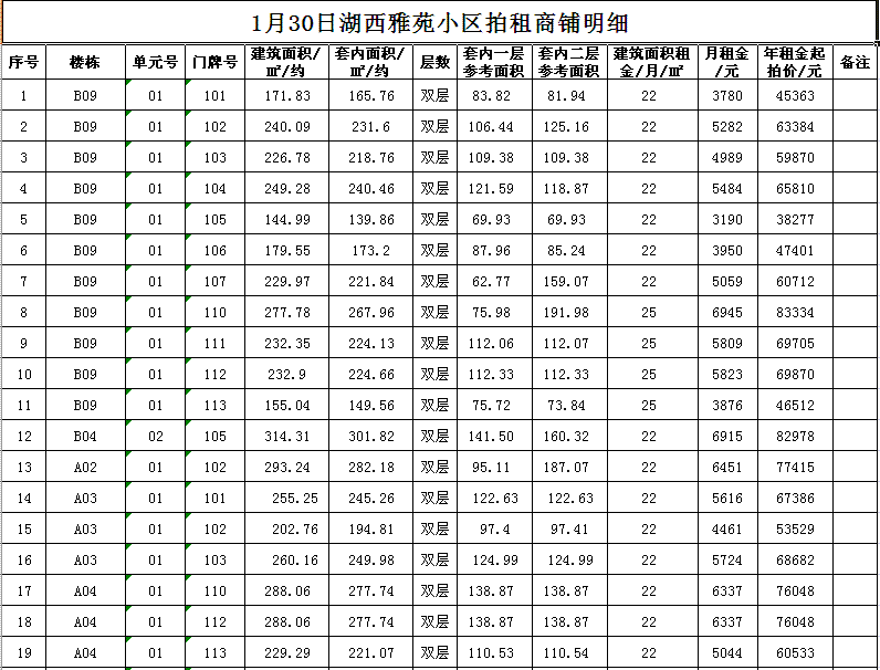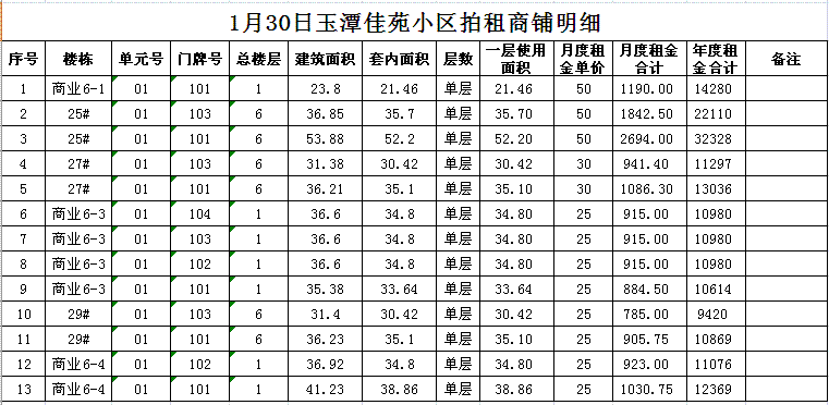 關(guān)注微信公眾號(hào)我公司受委托,定于2018年1月30日10時(shí)在本公司拍賣廳對(duì)以下小區(qū)門面房進(jìn)行公開拍租: