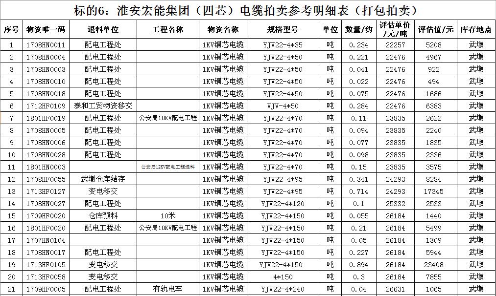 關(guān)注微信公眾號(hào)受淮安宏能集團(tuán)有限公司委托,我公司將通過中國拍賣行業(yè)協(xié)會(huì)網(wǎng)絡(luò)拍賣平臺(tái)以網(wǎng)絡(luò)競價(jià)的方式公開拍賣廢舊物資一批,主要包括:各型電纜,計(jì)算機(jī)、打印機(jī)等辦公用品(詳見拍品目錄)。
