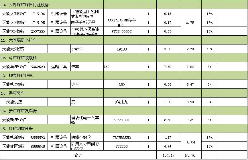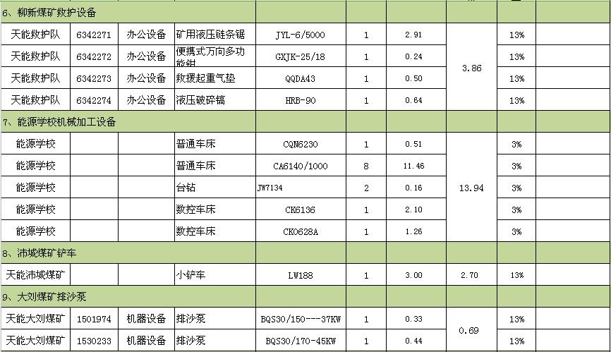裝載機、通風(fēng)機、綜掘機、變壓器、鏟車、叉車、排沙泵、汽車衡、繪圖儀、救護設(shè)備、機械加工設(shè)備、測量設(shè)備等。