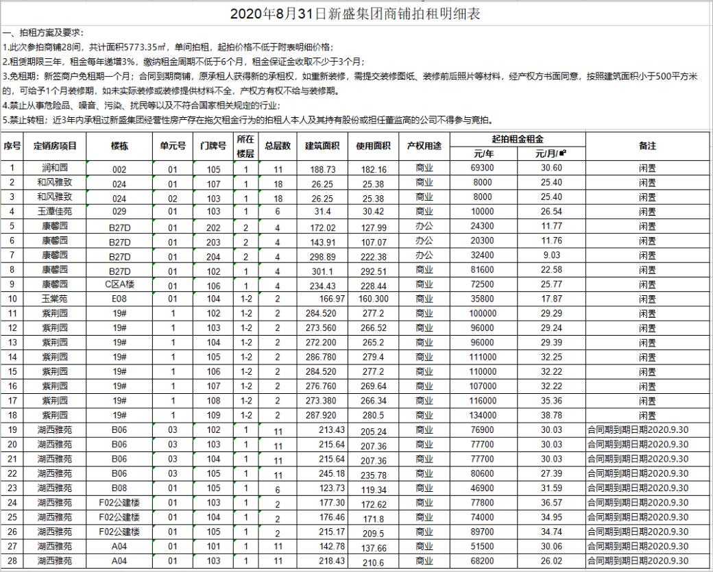 即日起展示。有意者請(qǐng)攜帶有效證件至我公司辦理報(bào)名手續(xù),并交納每間商鋪2萬元競拍保證金即可參加拍賣會(huì),報(bào)名截止至8月28日16時(shí)。