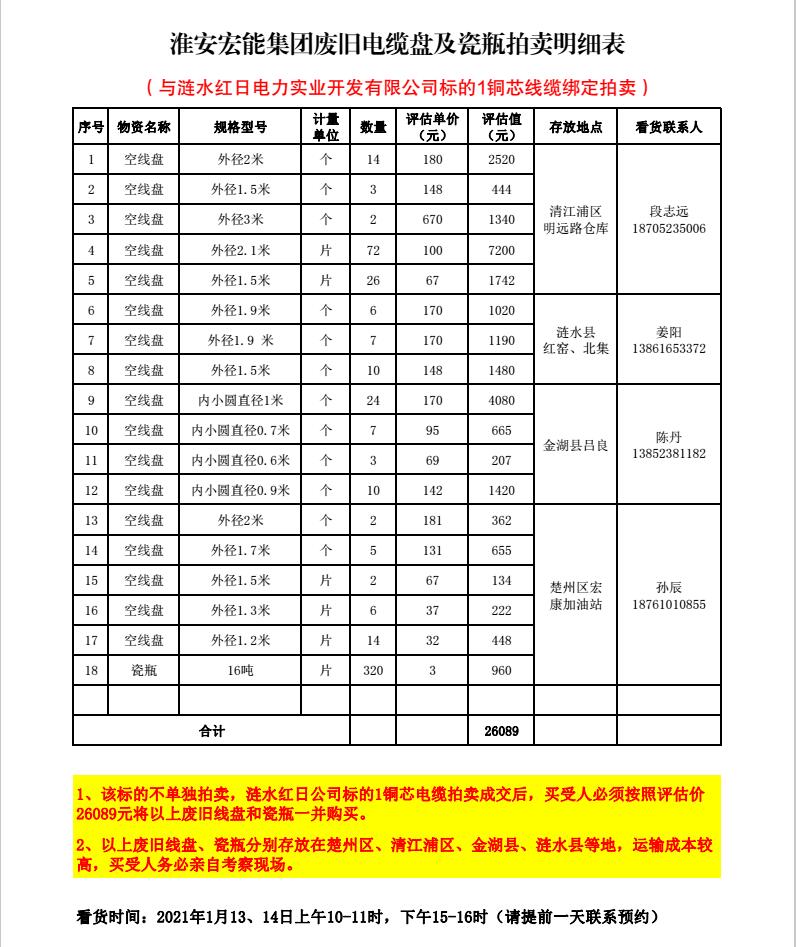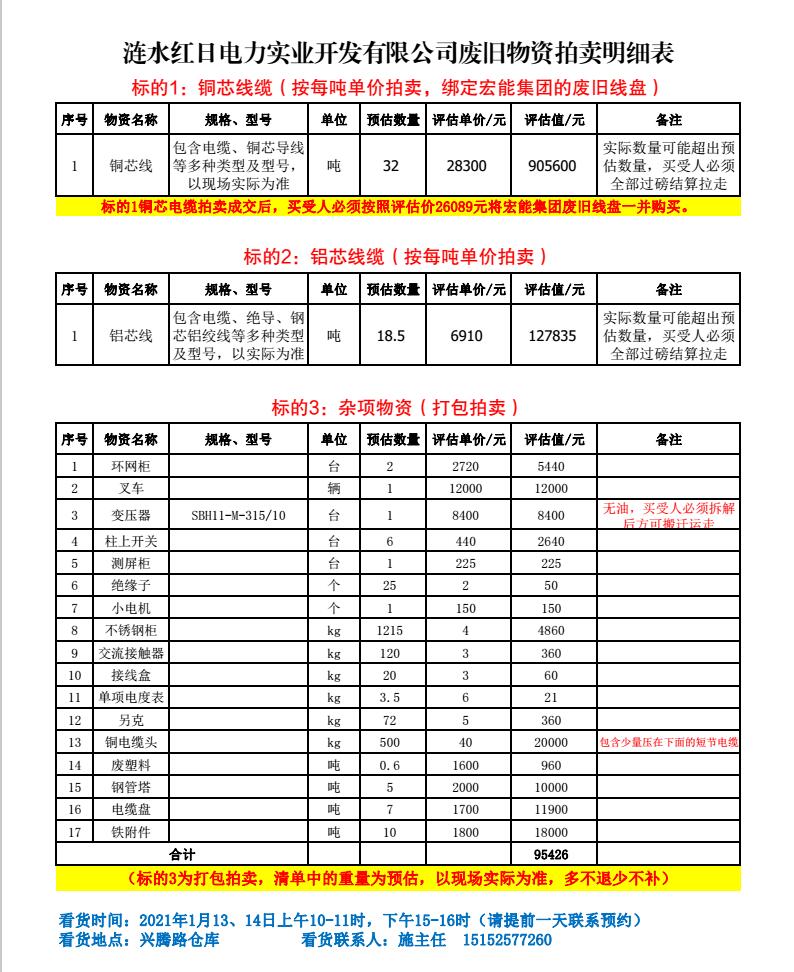 關(guān)注微信公眾號(hào)受委托,我公司將通過(guò)中拍平臺(tái)以網(wǎng)絡(luò)競(jìng)價(jià)的方式公開拍賣以下單位廢舊電力物資。主要包含:廢舊電纜盤、銅芯電纜、鋁芯電纜、鋼管塔、鐵附件、開關(guān)柜、變壓器、雜項(xiàng)物資等。