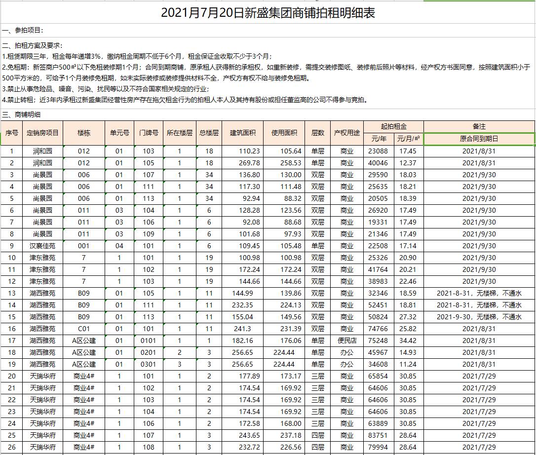 即日起展示。有意者請持有效證件至我公司報名,并交納每間商鋪1萬元保證金即可參拍,報名截止至7月19日16時。